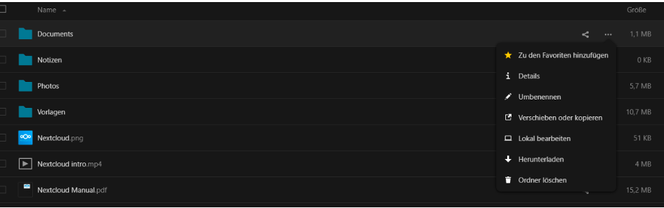 Durch einen Rechtsklick auf die gewünschte Datei oder den Ordner können Sie verschiedene Aktionen wie Löschen, Umbenennen oder Freigeben auswählen.