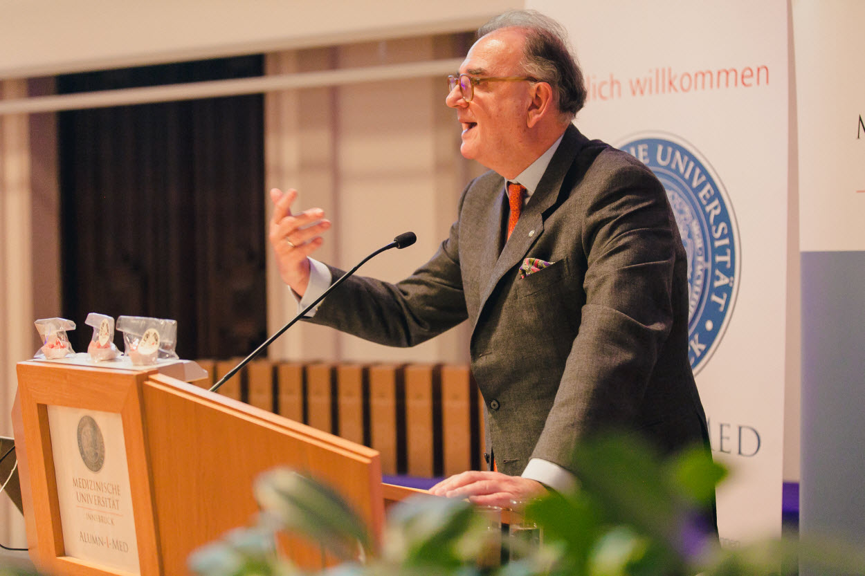 Die Medizinische Universität Innsbruck startete mit einem Besucher:innenrekord ins neue Jahr – ein Beleg dafür, dass die Aufbruchstimmung unter Rektor Fleischhacker und seinem Team auch 2019 anhält. Rekordverdächtig ist auch die Zahl der Professor:innen und Professoren, die 2018 neu an der Medizinischen Universität Innsbruck berufen wurden und von Rektor Fleischhacker – der gemeinsam mit ALUMNI-I-MED Präsident Brezinka durch das Programm führte – einzeln vorgestellt wurden. In seiner kurzen Ansprache resümierte Rektor Fleischhacker die Ziele, die er sich bei seiner Bewerbung für das Rektorat gesteckt hatte und betonte: „Konkrete Ziele müssen immer im Kontext des Gesamtentwicklungsprozesses der Universität gesehen werden. Schwerpunkte im kommenden Jahr werden wohl vorwiegend auf Berufungsverfahren im weitesten Sinn und einer Neugestaltung der Zusammenarbeit mit den Tirol Kliniken und dem Land Tirol liegen. Im Bereich der Lehre sind umfangreiche, zeitgemäße Anpassungen des Studienplans angezeigt“.