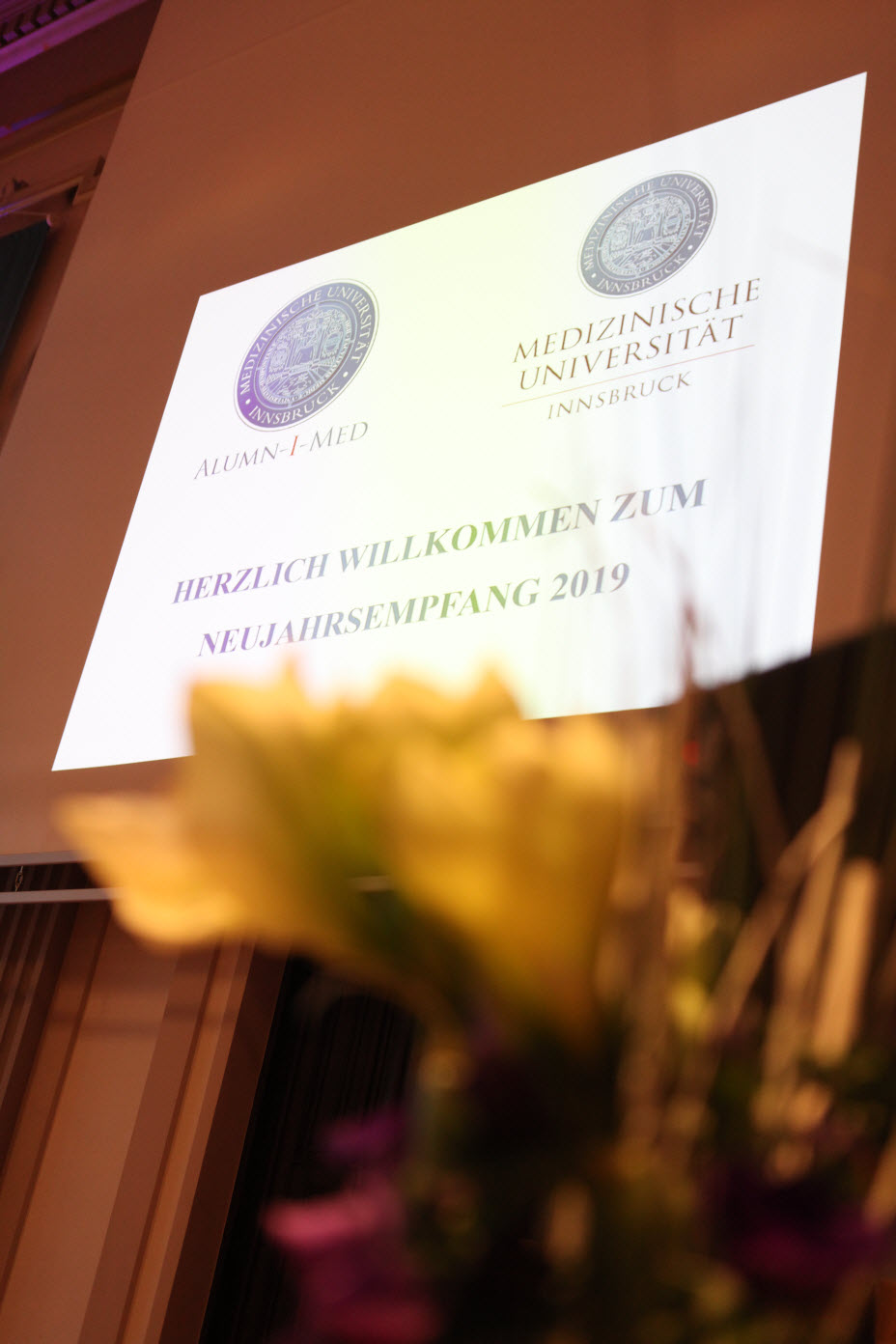 Rektor W. Wolfgang Fleischhacker und ALUMN-I-MED Präsident Christoph Brezinka luden am 16. Jänner 2019 wieder gemeinsam zum traditionellen Neujahrsempfang der Medizinischen Universität Innsbruck. Mehr als 200 Ehrengäste, Mitarbeiter:innen, Absolvent:innen, Studierende sowie Förder:innen kamen in die Aula der Universität, um gemeinsam einen Ausblick auf das neue Jahr zu nehmen.
