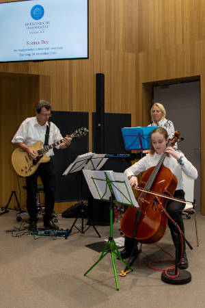 Anschließend führte Alexander Hüttenhofer, der Vorsitzende der Habilitationskommission der Medizinischen Universität Innsbruck durch die feierliche Veranstaltung, die musikalisch begleitet wurde. „Die Habilitation ist im Universitätsgesetz per Definition der Nachweis einer hervorragenden wissenschaftlichen Qualifikation. Jedoch erfordert eben genau dieser Nachweis ein entsprechendes hohes Maß an Zeit, Engagement und Idealismus“, betonte Hüttenhofer. Zudem merkte er anerkennend an, dass die wissenschaftliche Qualität der eingereichten Arbeiten zuletzt aufgrund einer Anhebung der Anforderungen in der Satzung deutlich gestiegen sei. Der Vorsitzende der Habilitationskommission nutzte die Gelegenheit, sich im Namen aller bei Sylvia Strigl für ihre Zeit, ihren Aufwand und beständige Freundlichkeit bei der Betreuung der Habilitanden zu bedanken.