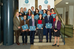 „Sie haben eine der wichtigsten Hürden auf ihrem wissenschaftlichen Karriereweg genommen und es steht Ihnen jetzt nach oben hin alles offen. Das ist ein Grund zu feiern“, fand auch Christine Bandtlow, die Vizerektorin für Forschung und Internationales, anerkennende Worte für die Privatdozent:innen. Sie gab einen Überblick über die Bedeutung der Verleihung der „Venia Docendi“, der höchstrangigsten Hochschulprüfung in Österreich, bevor sie den Wissenschafter:innen ihre Urkunden überreichte.
