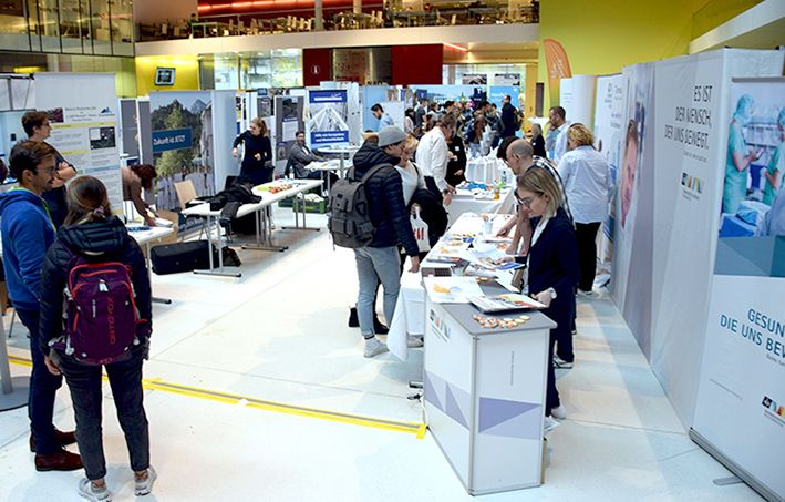 Das Klinisch-Praktische Jahr (KPJ) ist ein wichtiger, abschließender Teil des Medizinstudiums. Im Verlauf ihres Studiums müssen sich angehende Ärztinnen und Ärzte immer wieder mit folgenden Fragen auseinandersetzen:  Wo kann ich mein KPJ absolvieren? Welche Lehrabteilung gibt es? Verfügen sie über Unterkunftsmöglichkeiten für KPJ-Studierende? Wie finde ich eine akademische Lehrpraxis? Wie bewerbe ich mich richtig? Zum Ende des Studiums haben die Studierenden viele Fragen. Antworten finden Sie auf der jährlich stattfindenden KPJ-Messe im CCB. Auch in diesem Jahr waren die Stände der Lehrkrankenhäuser sowie Lehrabteilungen unter anderem aus Tirol, Südtirol, Vorarlberg, Salzburg, Oberösterreich und Kärnten gut besucht.