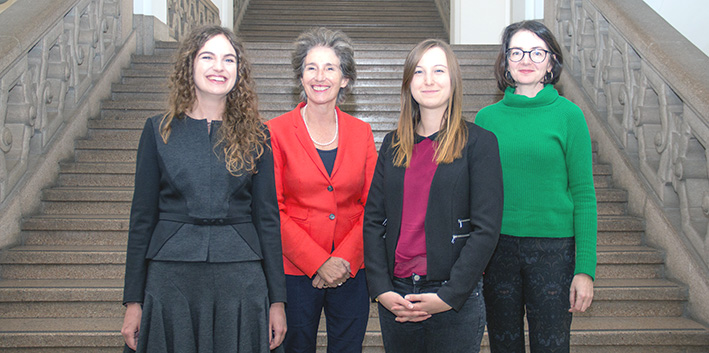 Stephanie Mangesius (Universitätsklinik für Neuroradiologie, Direktorin Elke R. Gizewski, Medizinische Universität Innsbruck) und Daniela Schiefeneder (Institut für Mathematik, Leopold-Franzens-Universität Innsbruck, Kooperationspartner Markus Haltmeier) wurden für ihr gemeinsames Projekt zur verbesserten Diagnose und Prognose Multipler Sklerose mit dem Jubiläumsfonds der Innsbrucker Universitäten ausgezeichnet (im Bild mit den Vizerektorinnen Christine Bandtlow und Ulrike Tanzer).