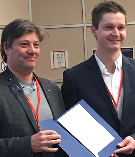 Im Rahmen der WIT (Wiener Intensivmedizinischen Tage) 2020 wurde die Forschungsförderung vergeben. Georg Lehner (im Bild rechts) erhielt die Förderung für sein Projekt zur Sepsisforschung. Foto: ÖGIAIN