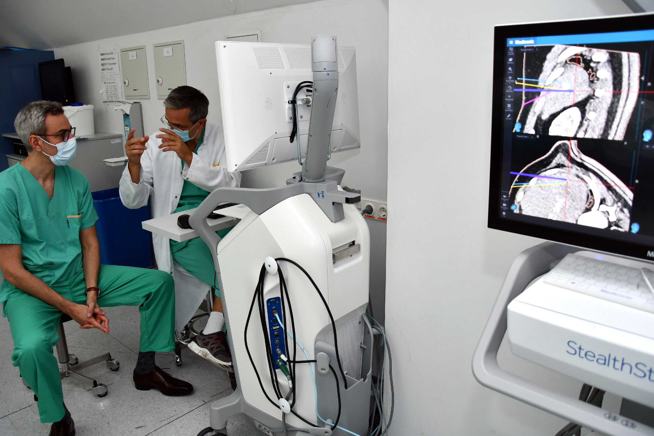 Detaillierte 3D-Planung, ein mehrnadeliger Zugang und eine intraprozedurale Bildfusion zur Überwachung und sofortigen Überprüfung des Behandlungsergebnisses sind die Erfolgskomponenten des Verfahrens, das bei gleicher Rezidivrate auch noch mit der schonenderen Technik gegenüber der Chirurgie punktet. „Nach der minimalinvasiven sRFA bleiben nur winzige Narben zurück und viele Patient:innen können das Krankenhaus bereits nach einem Tag wieder verlassen“, beschreibt Reto Bale die Vorzüge. Von diesen Pluspunkten und der durchdachten Methodik war auch Bruno Odisio schnell zu überzeugen, als er bei einem internationalen Radiologiekongress 2019 in Innsbruck auf Reto Bale traf. „Ich wollte mir selbst ein Bild von dieser vielversprechenden Methode machen. Leider kam die Pandemie dazwischen, sodass sich die erste Lehrstunde in Innsbruck erst jetzt umsetzen ließ“, erzählt der amerikanische Radioonkologe.
