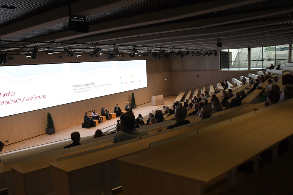 „Wissenschaftsvermittlung im Spannungsfeld von Medien, Wissenschaft und Politik“ – so lautete das Thema des diesjährigen Tiroler Hochschulempfangs. Der Einladung von Wolfgang Fleischhacker, Vorsitzender der Tiroler Hochschulkonferenz, folgten zahlreiche Angehörige der insgesamt acht Tiroler Hochschulen, Studierende und Interessierte.