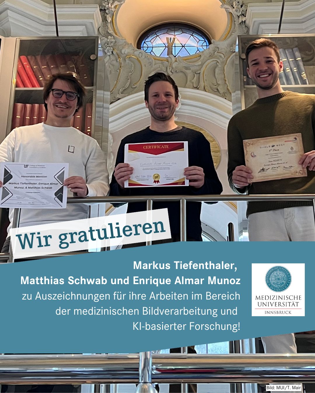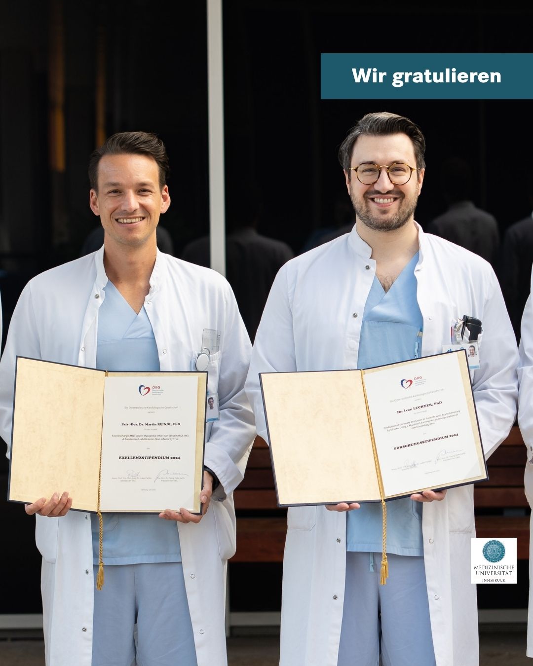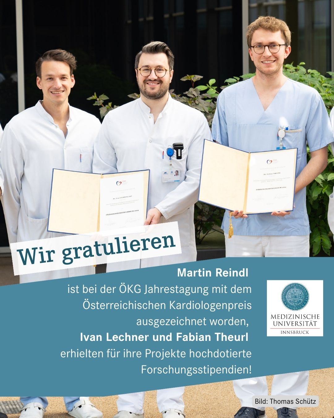 Im Rahmen der Jahrestagung der Österreichischen Kardiologischen Gesellschaft (ÖKG) 2024 wurden drei junge Kardiologen aus Innsbruck für ihre herausragenden wissenschaftlichen Leistungen ausgezeichnet: