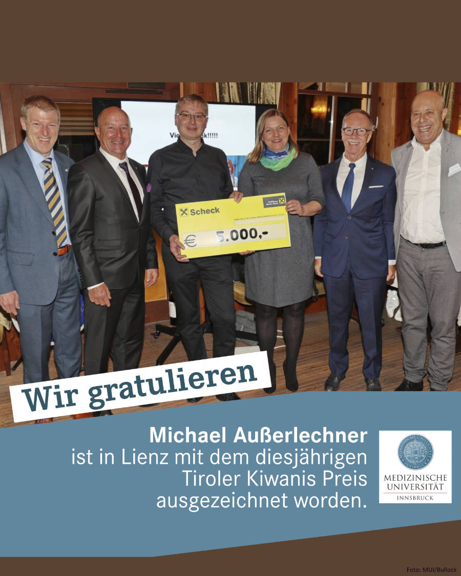 Michael Außerlechner von unserem 3D-Bioprinting Labor ist von den Tiroler Kiwanis Klubs für seine Forschung ausgezeichnet worden und darf sich über ein Preisgeld von 5000 Euro freuen. Herzliche Gratulation!