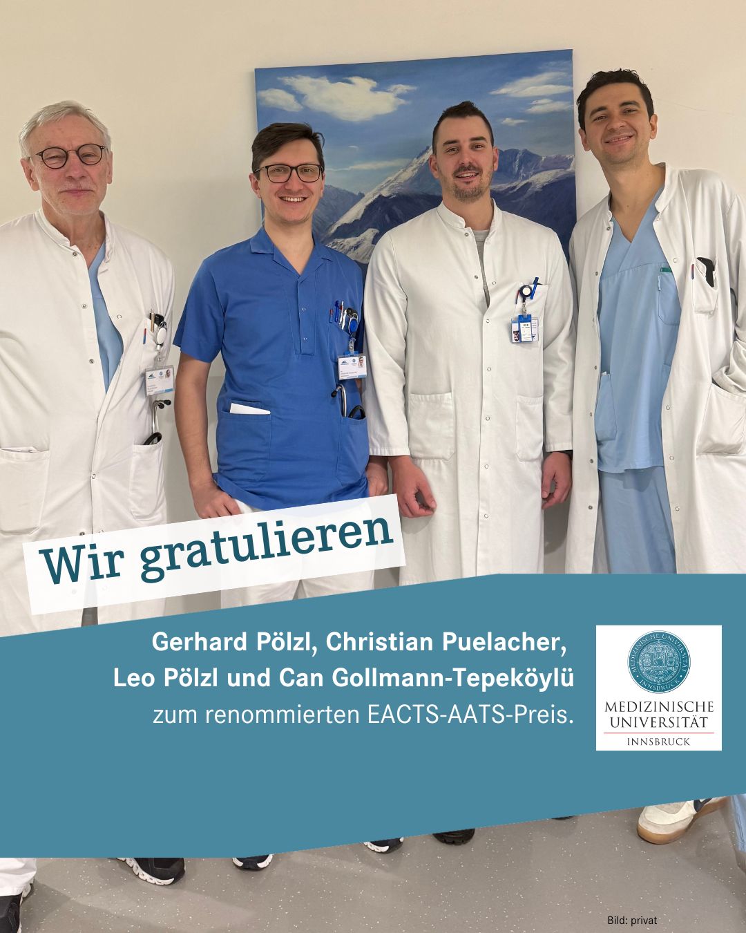 Herzchirurgie-Forschung mit Signalwirkung für Frauen! Die Forschungsarbeit eines Teams von Herzchirurgen um Leo Pölzl, Can Gollmann-Tepeköylü und Nicolaos Bonaros wurde kürzlich mit dem Young Investigator Award der European Association for Cardio-Thoracic Surgery (EACTS) prämiert.