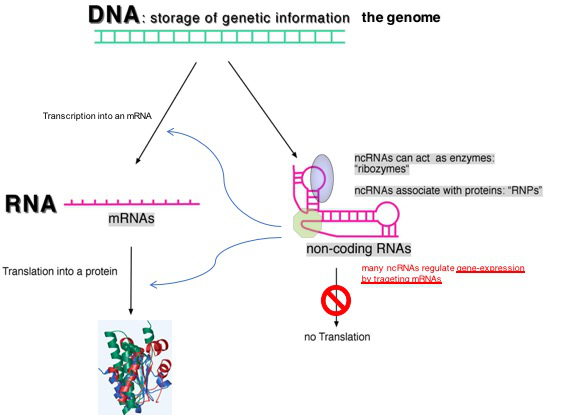 Cells from all organisms contain two different types of RNA molecule: messenger RNAs and so-called “non-protein-coding RNAs”. Many known ncRNAs are involved in the regulation of gene expression. Our research focuses on the identification of regulatory, non-coding RNAs, their functional characterisation and their role in human diseases. In addition to regulatory RNAs, the role of RNA modifications in mRNAs, tRNAs and rRNAs during protein synthesis is also studied.