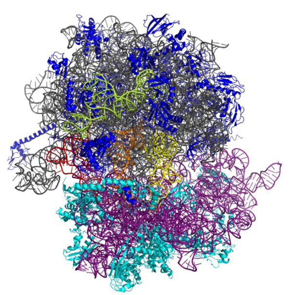 Fig. 3: The ribosome is an essential, multifunctional complex in every living cell. The regulation and mode of function of the ribosome represent one research focus of the Institute of Genomics and RNomics.