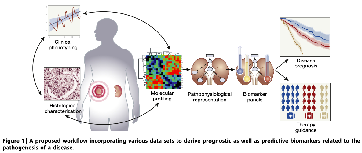 Fig. 1: Systems biology data integration allows pathophysiological disease modelling to delineate biomarkers for disease prognosis and therapy guidance.