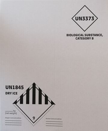 - Karton für Sendungen bei Raumtemperatur und den dazu passenden Biohazard pressure bag