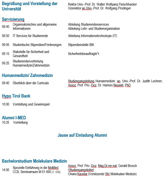 Die Medizinische Universität Innsbruck lädt alle Erstsemestrigen der Studien Humanmedizin, Zahnmedizin und Molekulare Medizin Bachelor herzlich zur Orientierungslehrveranstaltung ein.
