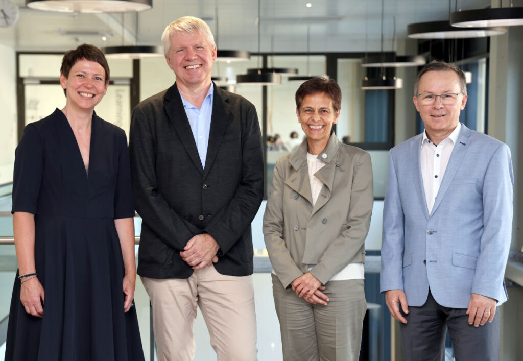 The Presidential Team of the Medical University of Innsbruck (from left): Vice President for Research and International Relations Univ.-Prof.in Dr.in Patrizia Stoitzner, President Univ.-Prof. Dr. Gert Mayer, Executive Vice President for Digitalization, Finance and Sustainability Mag.a Dr.in Irene Häntschel-Erhart and Executive Vice President for Teaching and Academic Affairs ao. Univ.-Prof. Dr. Wolfgang Prodinger, MME. (c) MUI/D. Bullock Innsbruck