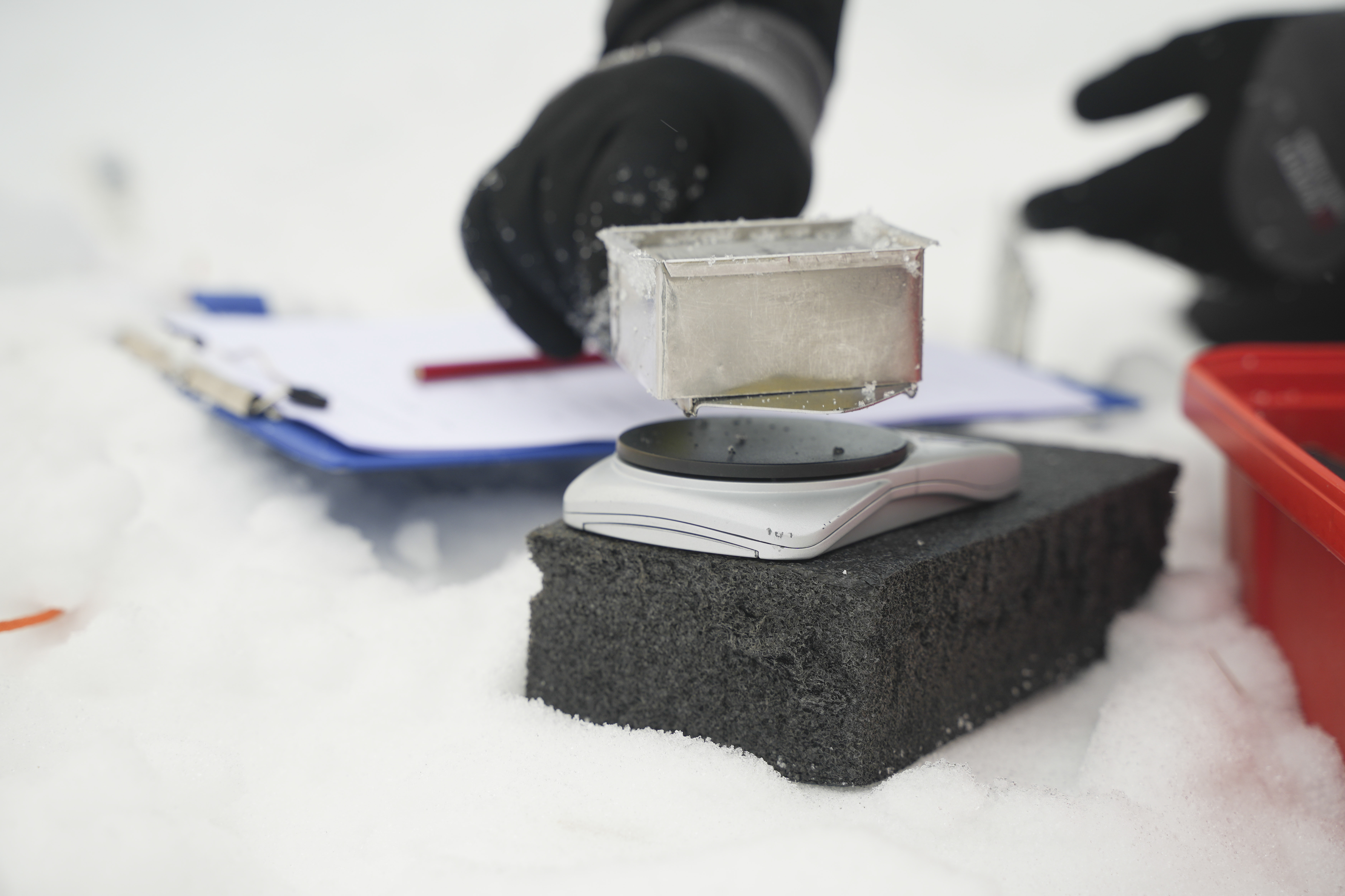 Das Forschungsteam hat die Eigenschaften des Schnees kontinuierlich analysiert, um die Luftdurchlässigkeit zu bewerten. (Copyright: Eurac Research/Marina Baldo)